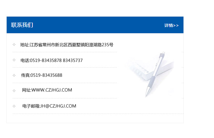 地址:常州市新北區友邦商務大廈1幢16、17層  電話:0519-85101652  傳真:0519-85112595  郵編:213022  網址:www_cz-jiayue_cn.chinaguoda.com  郵箱:xiajifengaa@163.com